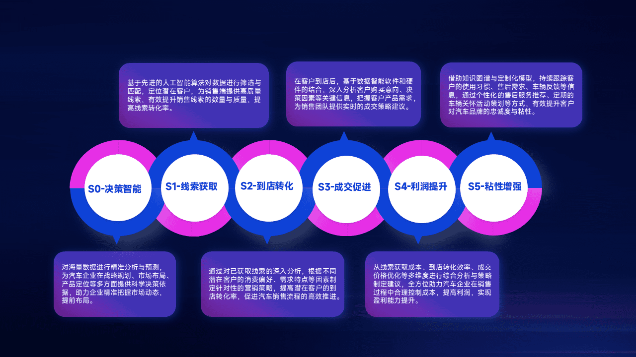 通过拓宽潜在客户来源、、优化线索分配并提高到店转化率,,以增强销售效率。。。。同时,,,利用线索数据不断优化分析模型,,,有效提升转化率,,,扩大营销影响力。。
